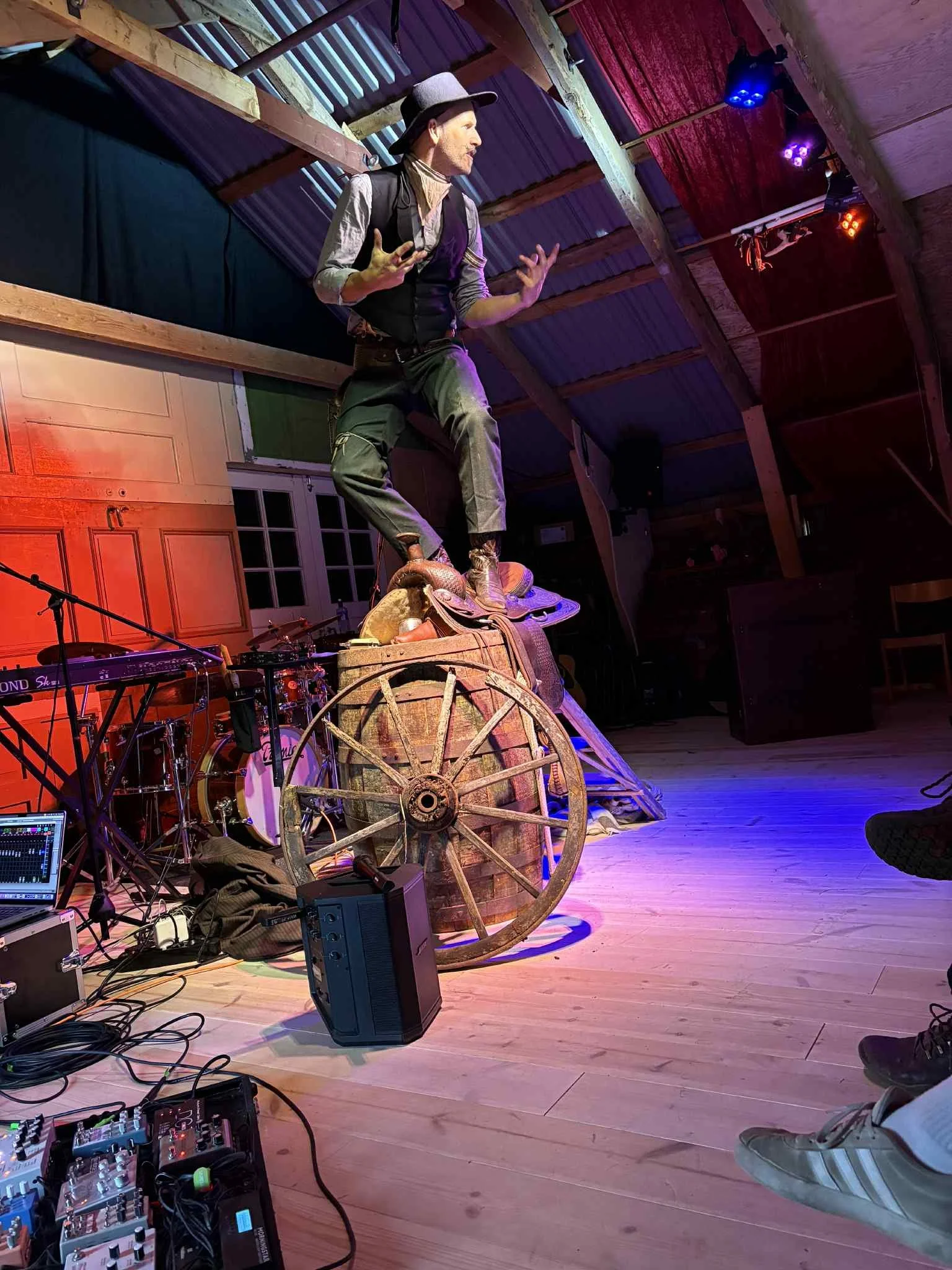 Föreställningen är en enmansshow som handlar om en cowboy som har förlorat sinhäst. Detta blir utgångspunkten för en berättelse om manlighet och identitetsskapande.Den handlar om resan i sin personlighet, om mognad & motstånd, den handlar om vilkaröster som man bör lyssna på och de som tvärt skall nonchaleras. Möjligheter och hinderför personlig utveckling särskådas. Utforskande av känslor över hela registret.